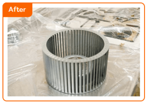 表面は拭けても、内部のファン(シロッコファン)には、調理中の油とホコリが混ざり合った、粘土のような頑固な汚れがこびりついています。 |