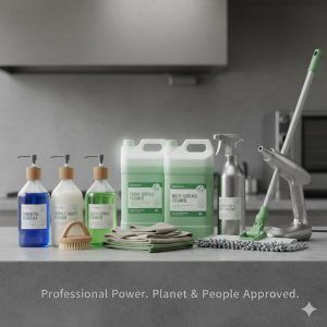 私たちが使用する洗剤や器材は、汚れを落とす効果が高いだけでなく、環境や人体への影響にも配慮されたプロ仕様のものです。
