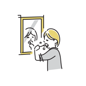 歯磨きをしながら、洗面台の鏡をクロスで拭く