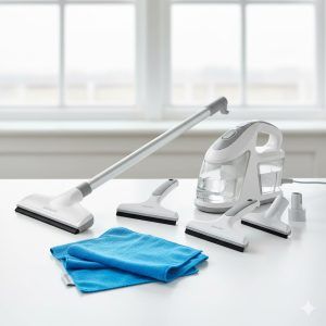 その後に掃除機をかけると、より効果的にホコリを除去できます。