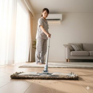 暖房の前に「朝イチモップ」でホコリ対策