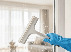 - 窓ガラスはスクイージーで仕上げる。