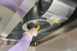 - 徹底した養生(ようじょう): 引越し先の新しい床や壁、あるいは退去時の綺麗な状態を傷つけないよう、専用のシートでしっかり保護。周囲を汚すことなく、レンジフードの中だけをピカピカにします。